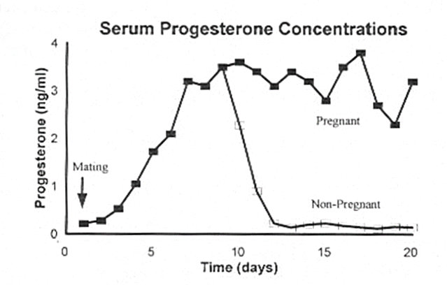 Progesteron in het bloed kan uitsluitsel geven bij dracht en/of bij alpaca merries die zich niet willen laten dekken. Progesteron (zwangerschapshormoon) gehalten > 1 ng/ml duiden op de vorming van een geel lichaam en kans op dracht. Bloedmonsters dienen 15-20 dagen na dekking genomen te worden, wanneer bij het niet drachtig zijn het progesteron gehalte langzaam gaat afnemen. Serum progesteron gehalten in de lama variëren van 2 tot 8 ng/ml en in de alpaca van 1,5 – 5 ng/ml.